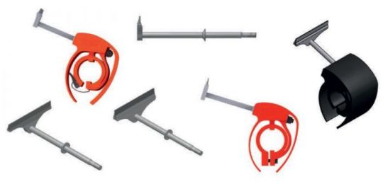 - Модульная система, состоящая из системной несущей трубы, твердосплавных ножей, монтажной опоры из полиуретана и винтового натяжного устройства со скобой жесткости